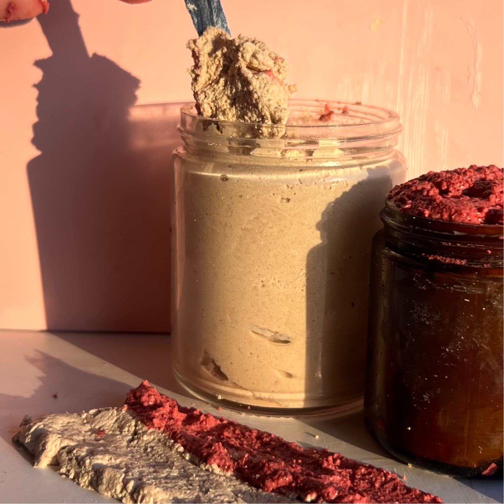Ingredients: Distilled water, kaolin clay, jojoba oil, avocado oil, French yellow clay, wax emulsifier, BTMS-50, colloidal oatmeal, oatmeal extract, honeyquat, raw honey, optiphen (preservative).
